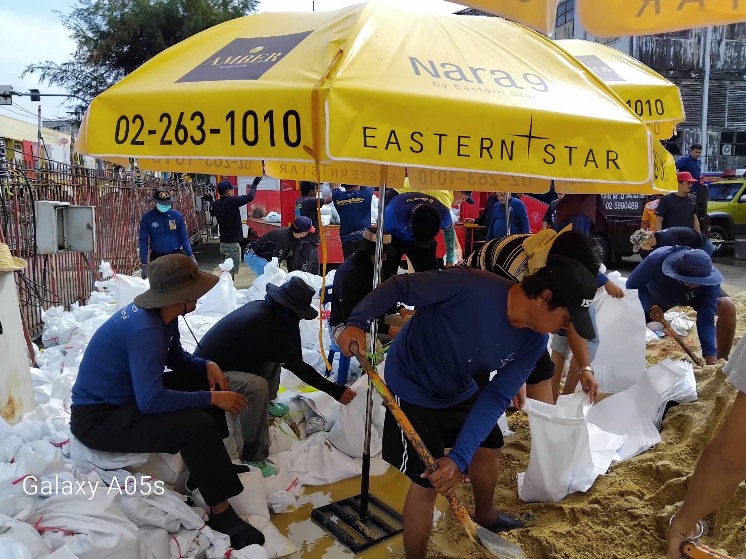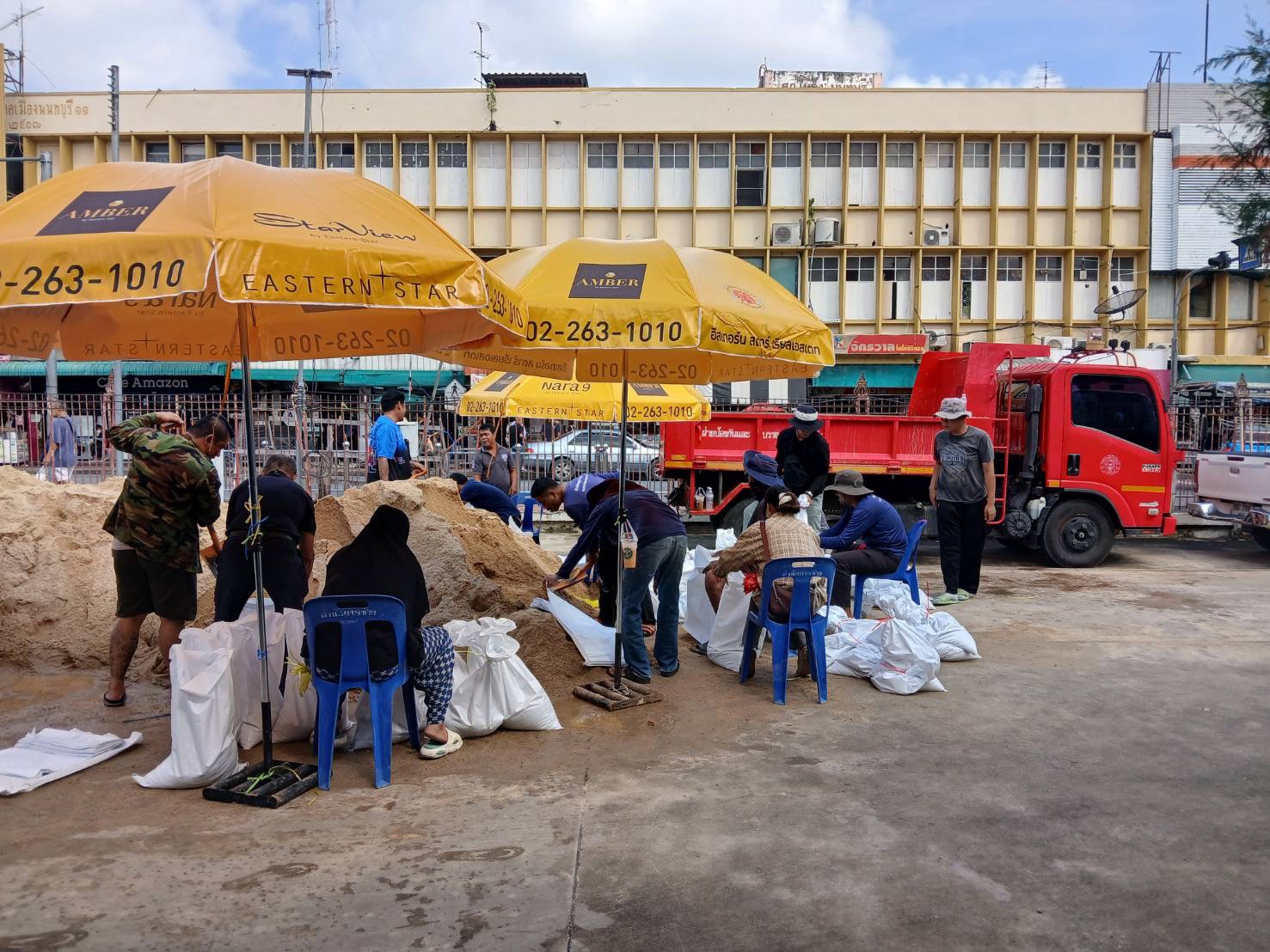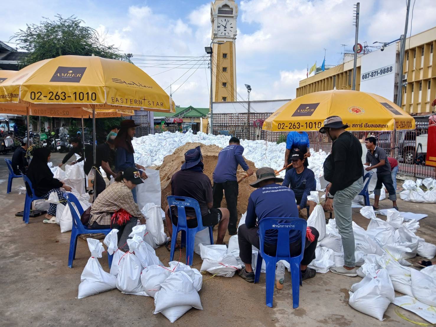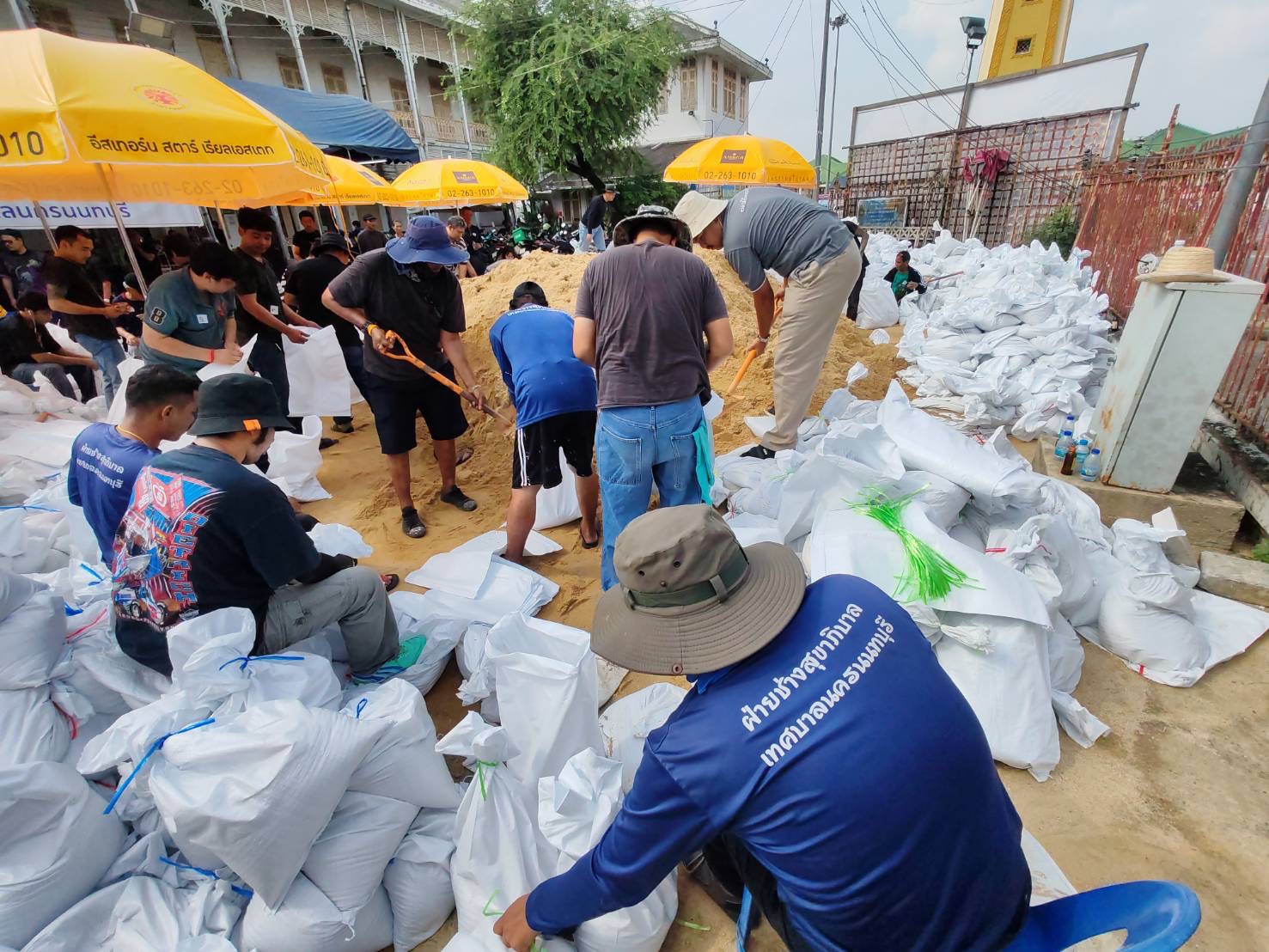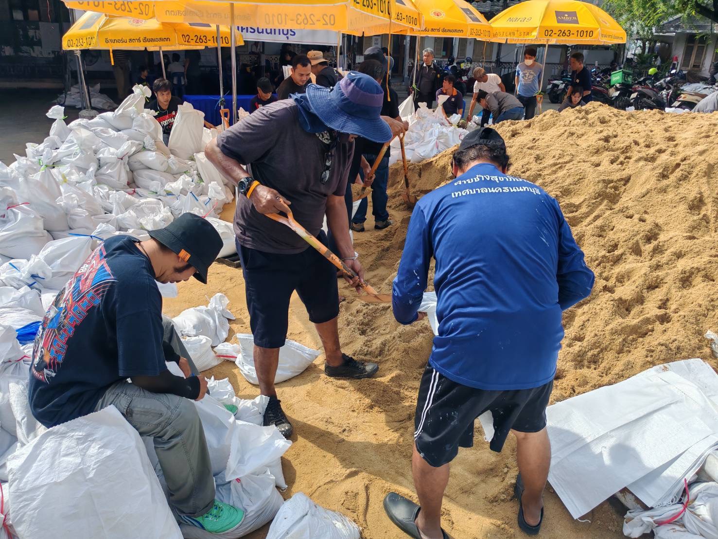 ฝ่ายช่างสุขาภิบาล ช่วยบรรจุกระสอบทรายเพื่อสร้างแนวคันกั้นน้ำ บริเวรท่าน้ำนนท์ เพื่อป้องกันบ้านเรือนประชาชนที่อยู่ริมแม่น้ำเจ้าพระยา ให้เกิดผลกระทบน้อยที่สุด