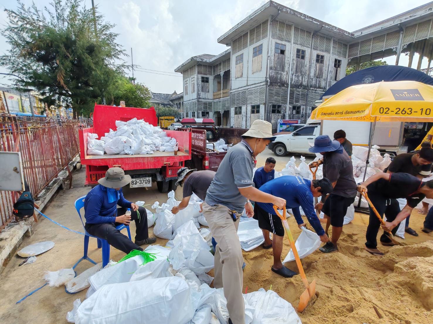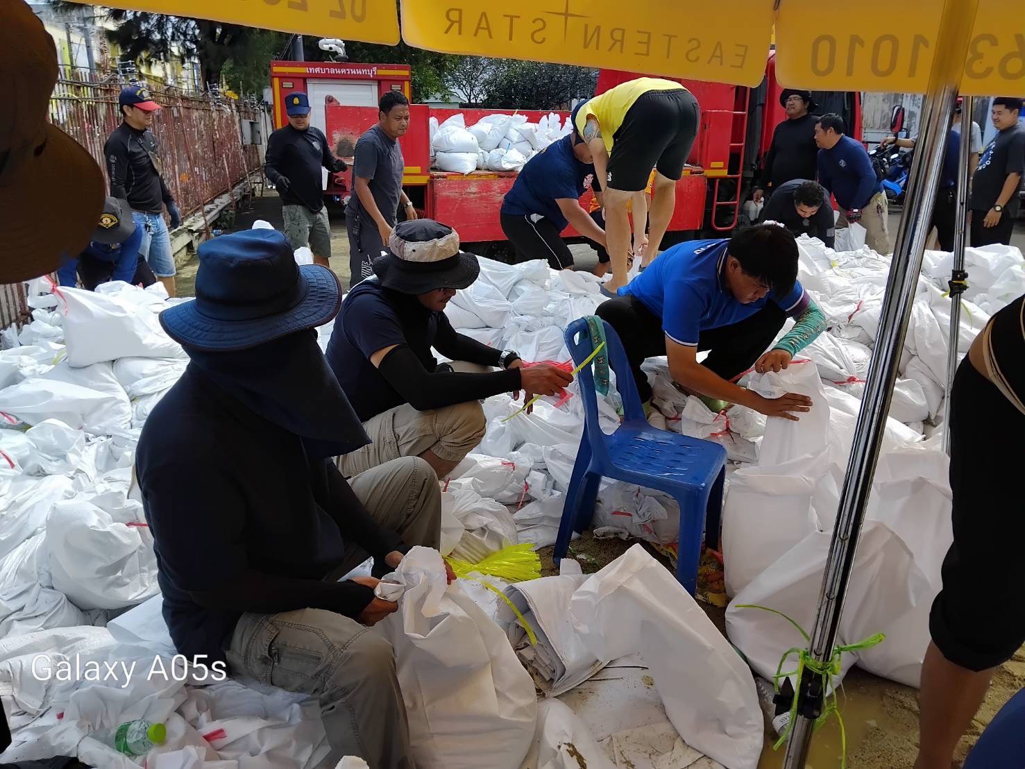 ฝ่ายช่างสุขาภิบาล ช่วยบรรจุกระสอบทรายเพื่อสร้างแนวคันกั้นน้ำ บริเวรท่าน้ำนนท์ เพื่อป้องกันบ้านเรือนประชาชนที่อยู่ริมแม่น้ำเจ้าพระยา ให้เกิดผลกระทบน้อยที่สุด